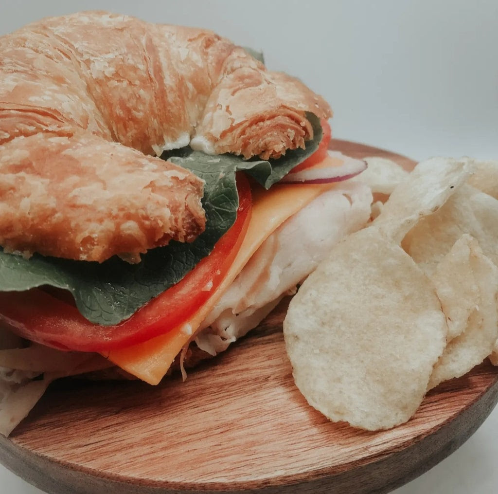 Options include Turkey Bacon or Hot Ham & Swiss! Served on a croissant.